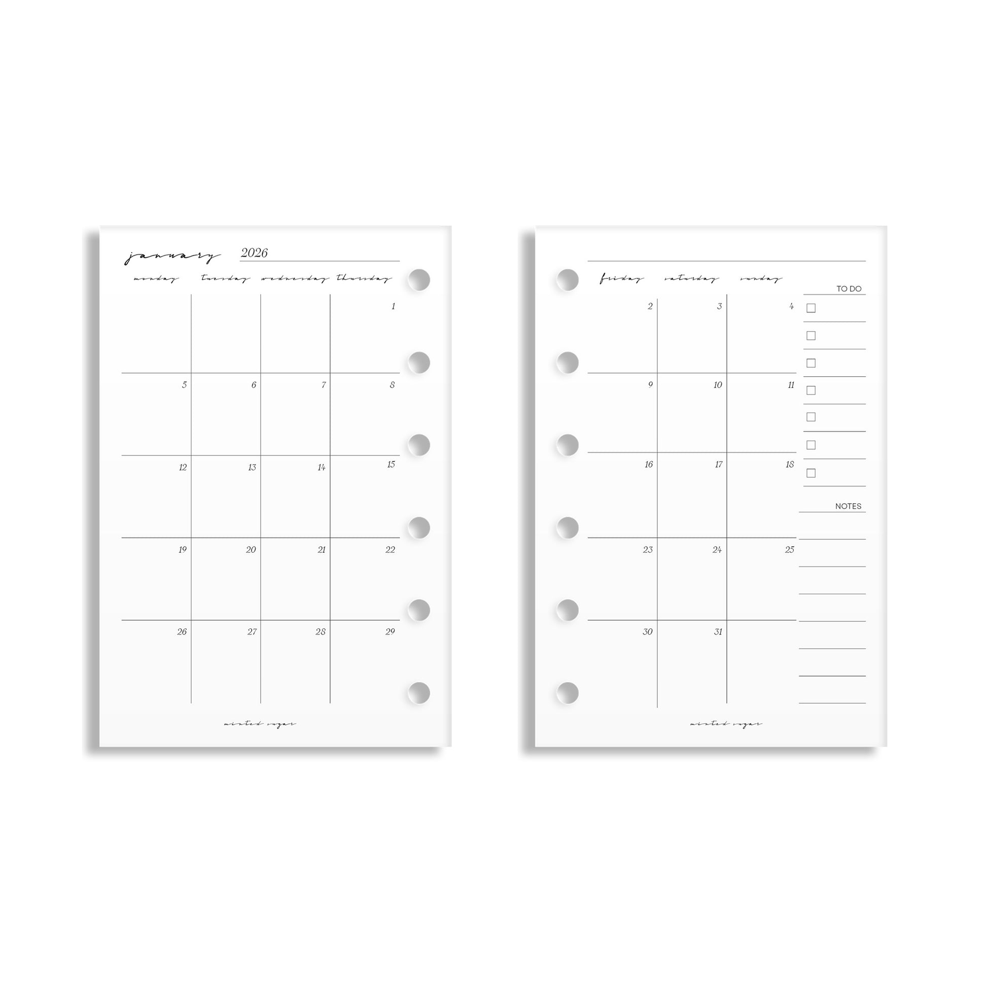 With months printed back-to-back, this insert brings visual ease and classic structure—perfect for second planners or minimal monthly setups.