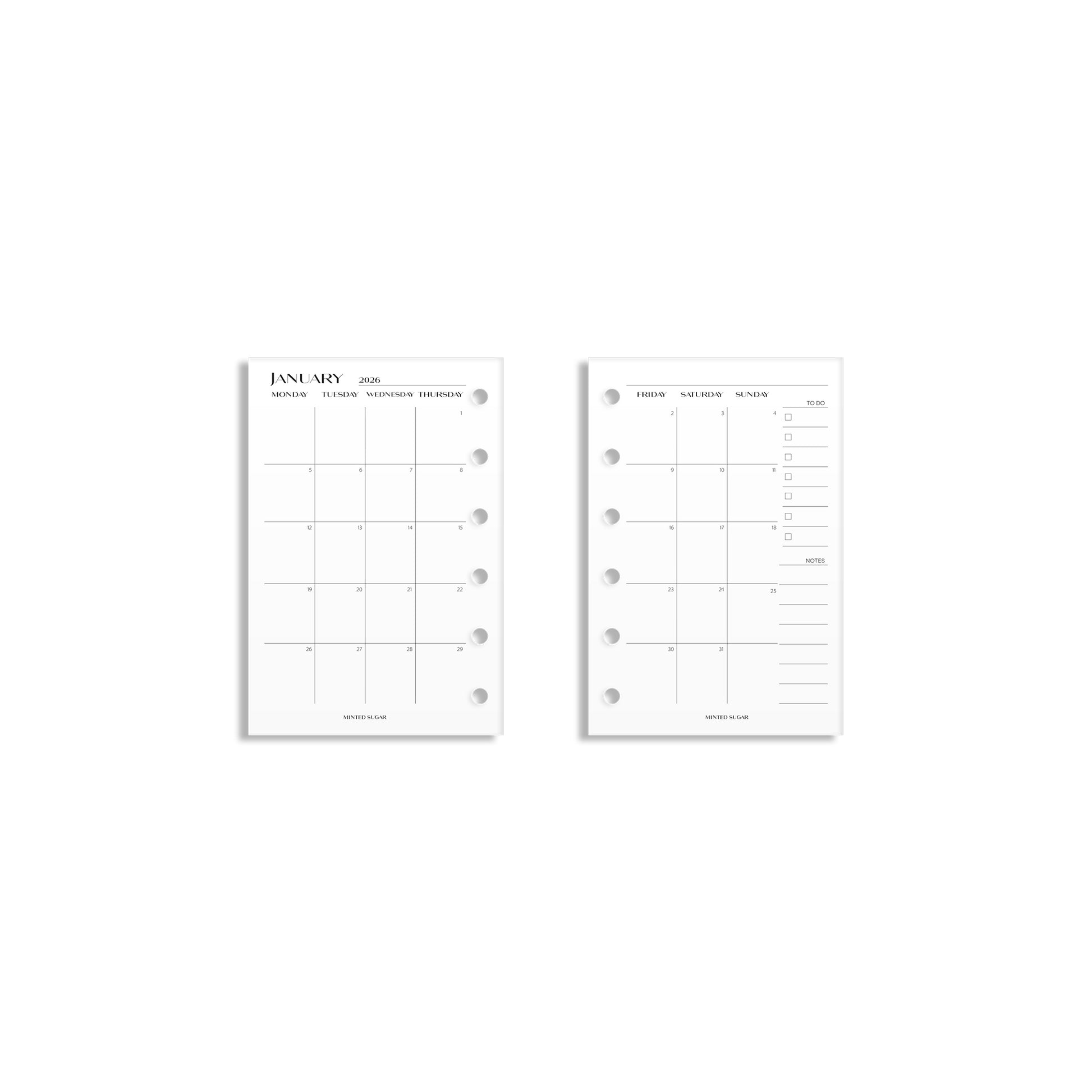 2026 Monthly Insert – Back to Back Layout – No. 2 Font