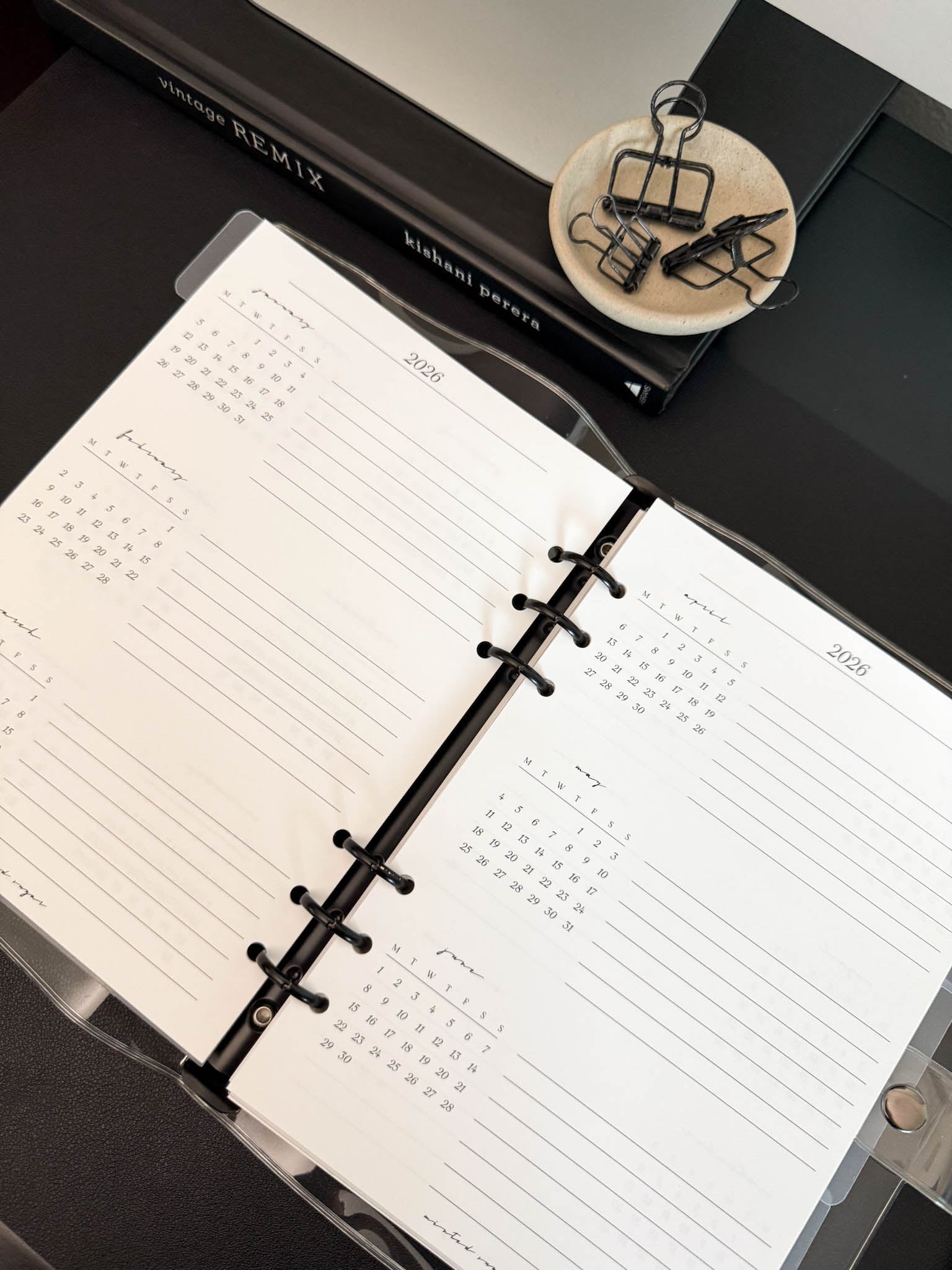 This monthly layout features back-to-back spreads and our crisp No. 2 font—made for slim setups, second planners, and visual ease.