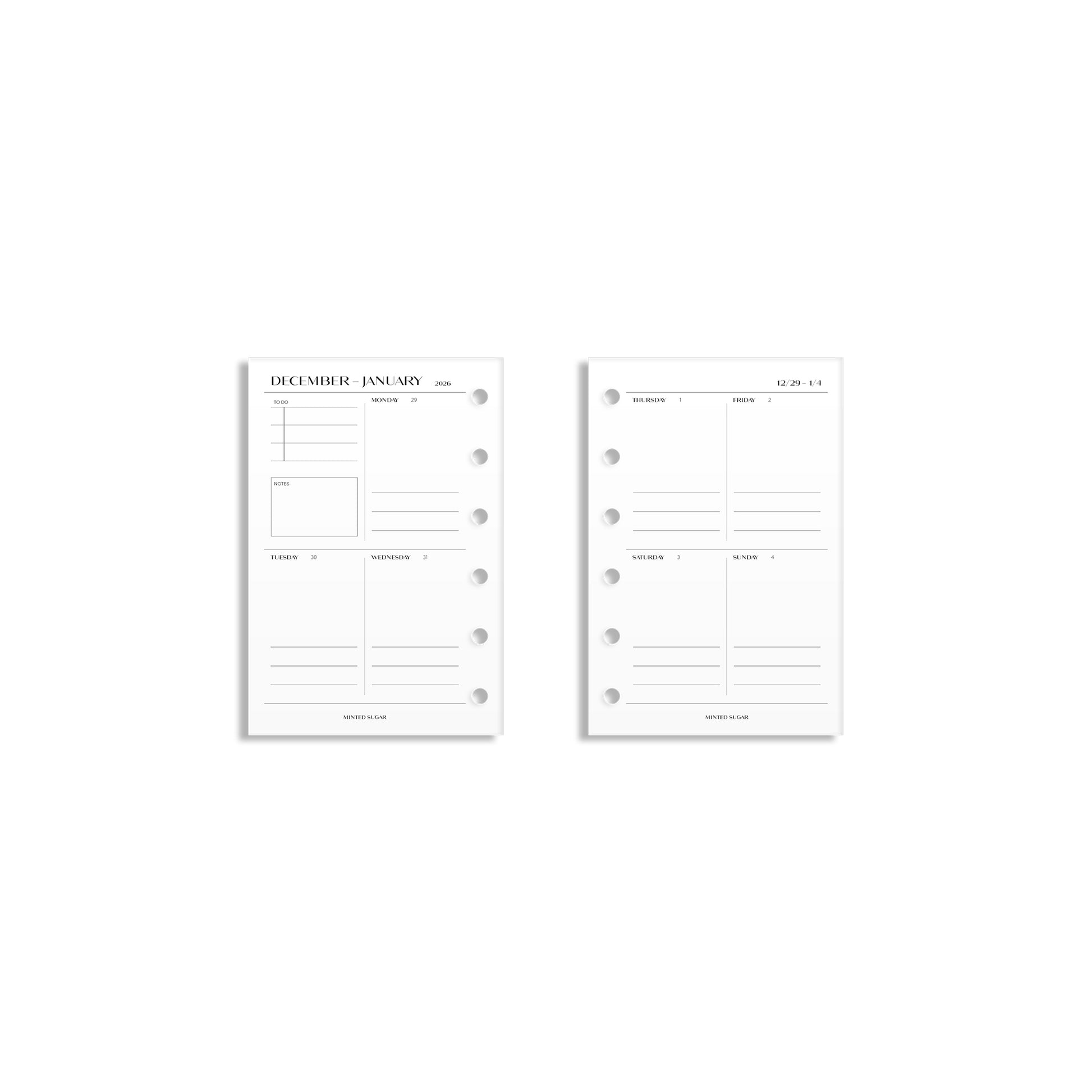2026 Weekly Insert – Vertical Layout – No. 2 Font